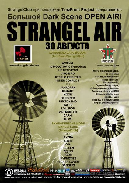 То чего так долго ждали российские поклонники Schwarze Szene наконец состоится, а именно музыкальный фестиваль на открытом воздухе. 30 августа на территории базы отдыха завода "Кристалл" на двух сценах выступят лучшие представители российской тёмной электронной сцены и ведущие диджеи клуба Strangel, Tanzfront Project, Gothic.Ru.