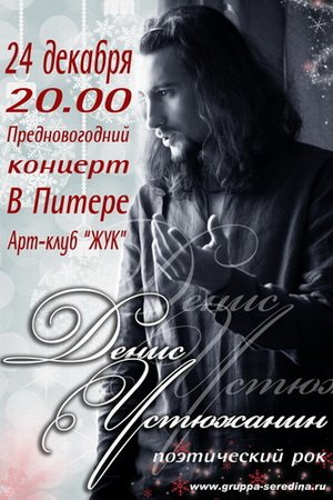 24 декабря в преддверии нового года в уютном Арт-клубе «Жук» состоится сольный концерт Дениса Устюжанина (группа СЕРЕДИНА).