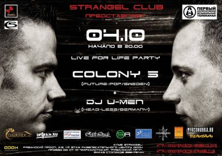 Клуб Strangel представляет осеннюю сессию тематических программ Live for Life! и долгожданное выступление шведской future-pop группы COLONY 5.