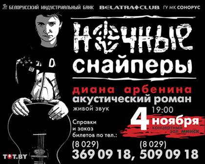 Всем известно, что Ночные снайперы изначально "имели" 2 вокалистки. Однако 2 талантища рядом не уместились. В итоге: Диана Арбенина осталась, а Светлана Сурганова ушла. Кстати, расстались мирно, теперь общаются и поддерживают друг друга. А творчество процветает и у одной, и у другой. В итоге имеем 2 отичных колллектива. Здесь же речь о Ночных снайперах.