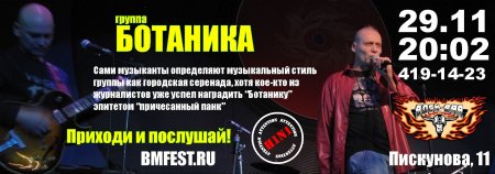 Впервые в Нижнем - гр. Ботаника Рок Бар | ул. Пискунова, 11 29/11/12 | 20:02 Хорошая музыка для хороших людей. Провожаем осень... Творческий багаж "Ботаники" тут ===> www.music.yandex.ru/#!/artist/748966 www.botanica.ru/