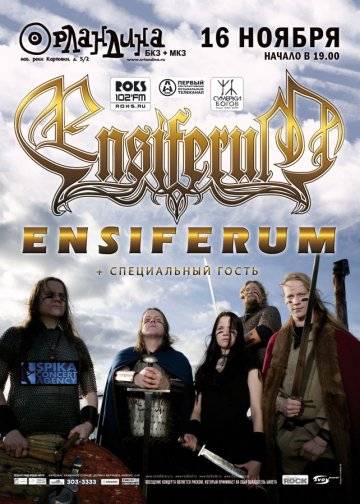 Энергичная и гипермелодичная музыка финской folk/melodic death metal группы ENSIFERUM уже хорошо знакома в России. В прошлом году группа с успехом выступила в Москве и Санкт-Петербурге, доказав, что не только FINNTROLL способны на аншлаги, но и их более молодые коллеги в деле северного тяжелого фолка способны на это.