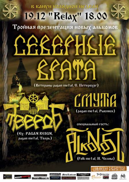 В пятницу 19 декабря в канун колядной недели на сцене культового московского клуба “Relax” состоится уникальное событие на сцене славянского pagan /folk metal - презентация трех сильнейших релизов уходящего 2008 года.