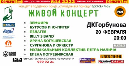В концерте принимают участие: Петр Налич; Земфира; Бутусов и Ю-Питер; Пелагея; Billy's Band; Ирина Богушевская; Сурганова и Оркестр; Елена Погребижская.