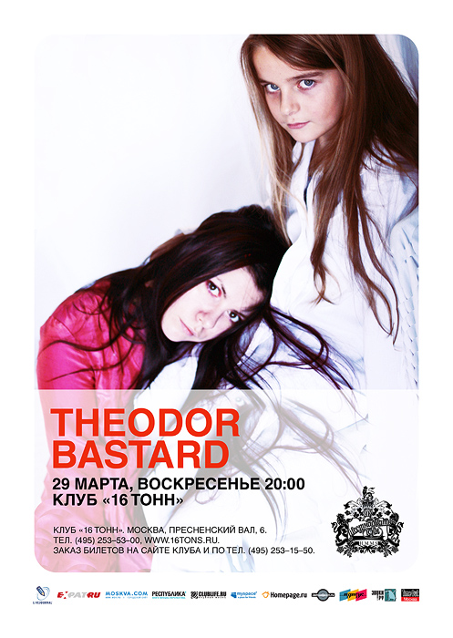 Одни из главных людей российской независимой сцены, они работают на стыке готик-рока, world music и прогрессивной электроники. Выступление Theodor Bastard - это всегда очень интересное действо, как с музыкальной, так и с театральной стороны. Музыканты в конце минувшего года выпустили новый альбом «Белое. Ловля злых зверей», который кардинально отличается от прежних работ коллектива как по звучанию, так и по эстетике: большинство композиций далеки как от привычной для группы восточной тематики, так и от приписывающейся питерским музыкантам «темной» направленности; все песни были записаны на русском языке.