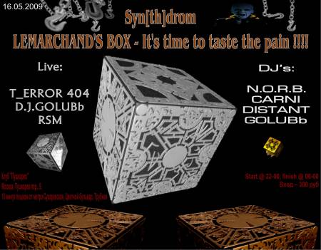 [Syn[th]drom Community] с радостью приглашает всех на очередное мероприятие Syn[th]drom - LEMARCHAND'S BOX, которое состоится в уютном клубе "Пушкарев" в центре Москвы.