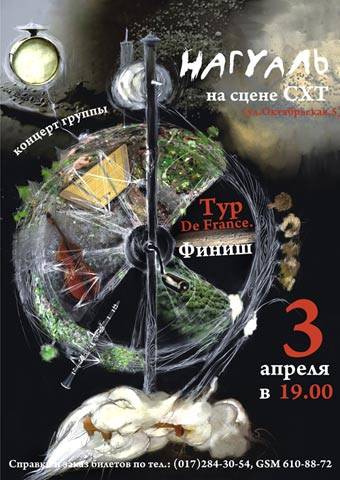 Нагуаль почти весь март гастролируют по странам Европы. Тур стартовал 9 марта в Варшаве, после этого белорусские музыканты выступят в Германии (Берлин, Лейпциг, Дортмунд) и Франции (Дижон, Клюни, Лин, Монпелье, Тулуза, Бордо, Пуатье, Брессюир, Лимож, Мель, Анже, Брест, Ренне, Париж). Финишировать группа будет в Беларуси 3 апреля большим сольным концертом на сцене СХТ (ул.Октябрьская, 5). Справки по телефонам: (GSM)610-88-72 и (017)284-30-54