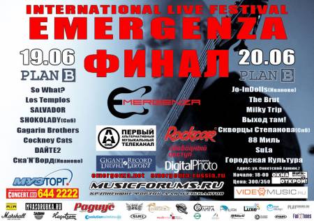 20 ИЮНЯ В 18:00 В КЛУБЕ PLAN B ГОРОДСКАЯ КУЛЬТУРА В НАЦИОНАЛЬНОМ РОССИЙСКОМ ФИНАЛЕ МЕЖДУНАРОДНОГО ФЕСТИВАЛЯ EMERGENZA БУДЕТ БИТЬСЯ ЗА ЧЕСТЬ ПРЕДСТАВЛЯТЬ РОССИЮ В МЕЖДУНАРОДНОМ ФИНАЛЕ В БАВАРИИ!!!