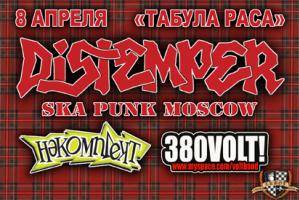 Группа, стоявшая у истоков ска-панка в России, была образована в 1989 году. На концерте Distemper обещают представить свой новый альбом. Море драйва, слэм, беззаботный отрыв - вот что ждет гостей концерта.