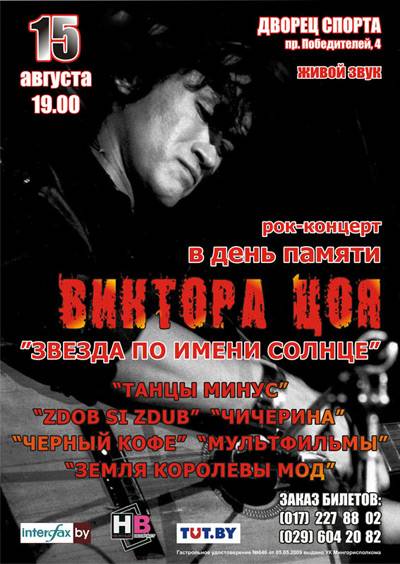 В грандиозном трибьют-концерте примут участие популярные группы: "Танцы минус", "Zdob si zdub", "Чичерина", "Черный кофе","Мультфильмы", "Земля королевы мод" и др. Они исполнят лучшие песни из репертуара Цоя, а также свои новые и старые хиты. На двух больших экранах будет транслироваться видео с последних концертов Виктора.
