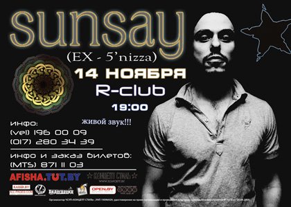 "SunSay" - украинская фьюжн-фанк-рэгги группа, основанная бывшим лидером и вокалистом 5'nizza Андреем Sun Запорожецем. Основана в 2007 году, изначальный репертуар составляет переработанный материал третьего неизданного альбома группы 5'nizza. Песни исполняются на русском, украинском и английском языках.