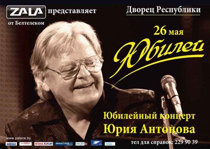 Судить об этом Мастере песни можно только по творческим результатам его деятельности. Юрий Антонов блестящий композитор и замечательный певец и хотя его песни исполняют многие артисты, лучше чем сам автор, их не поет никто. Специалисты жанра отмечают, что Антонов создал категорию песен лирических и массовых одновременно. В музыкальном строе каждой из них своя неповторимая особенность, которую мы не без удовольствия улавливаем слухом. В таких звуковых находках автор проявляет незаурядную изобретательность и мастерство. Творческий диапазон Ю. Антонова огромен: от «Маков» - яркой гражданской песни - до тончайшей интимной лирики «Не говорите мне прощай». В концерте, который состоится 26 мая в Большом зале Дворца Республики, прозвучат всем знакомые и любимые песни.