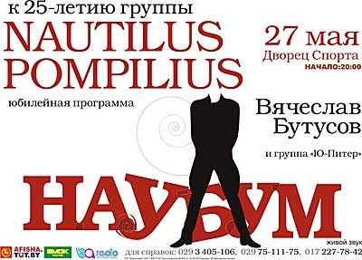27 мая город Минск сможет увидеть уже ставшую легендарной программу «НАУ-БУМ», посвященную 25-летию группы «Наутилус Помпилиус».