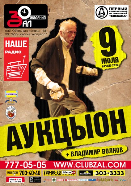 Теперь, год спустя, АукцЫон снова возвращается в Зал Ожидания, что бы порадовать публику своими удивительными песнями. Причем, вполне возможно, что будут исполнены и новые композиции, пока еще не записанные. Коллектив даст концерт в «расширенном» составе – вместе с АукцЫоном будет выступать Владимир Волков. Так что концерт будет еще интереснее. Что же – 9 июля в «Зале Ожидания» услышим все сами.