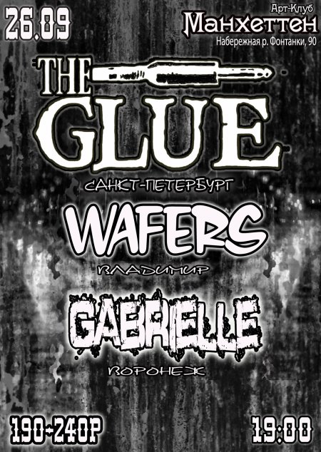 В воскресенье, 26 сентября, в культовом клубе Манхэттен состоится большой гранж-концерт в рамках мини-тура группы The Glue! Цена билета в предварительной продаже - 190р. В день концерта - 240 р.