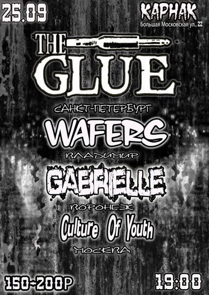 В рамках микро-тура по России, известная питерская гранж группа The Glue, так же называемая "Российской Нирваной", выступит на владимирской сцене, в клубе "Карнак".