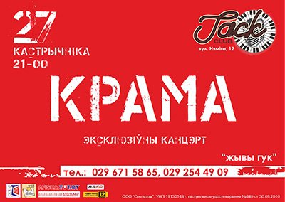 Квіткі: танцпляц – 30.000, столікі – 40.000. Кант.тэл.: 8 (029) 671 58 65, 8 (029) 254 49 09.