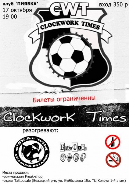 Не пропустите ЕДИНСТВЕННЫЙ концерт Московской ска-панк команды Clockwork Times в контакте