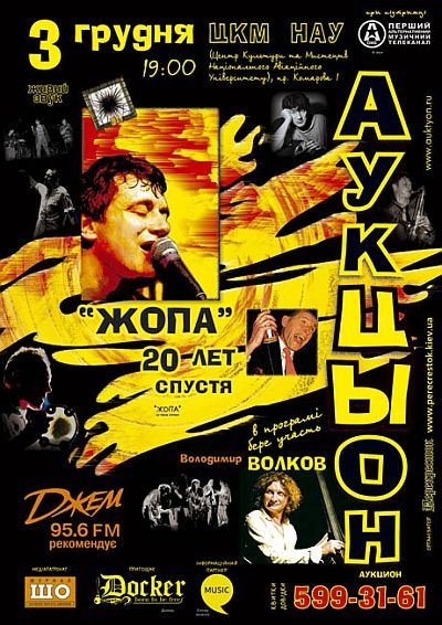 3 декабря 2010 г. легендарная питерская группа АукцЫон в компании с известным джазовым контрабасистом Владимиром Волковым дадут большой концерт, посвященный 20-ти летию выхода альбома «Жопа» («Дупло»).