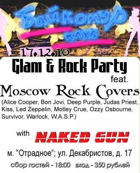 Последнее выступление M.R.C. в 2010-м году состоится 17 декабря в клубе Байконур при одноимённом кинотеатре. Вместе с нами будут играть наши старинные кореша из Naked Gun, и, стало быть, мы и сами немного подтянули программу под стандарты "восьмидесятнического" рока.