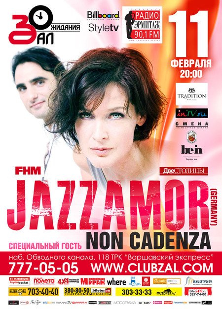 11 февраля в клубе "Зал Ожидания" состоится концерт группы JAZZAMOR (Germany), приуроченный ко Дню св. Валентина. Специально приглашенные гости - Non Cadenza!