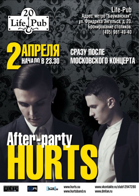 2 апреля 2011 года в ГЛАВCLUB состоится первый и единственный московский концерт будоражащего умы английского проекта HURTS в рамках мирового турне в поддержку альбома «Happiness».