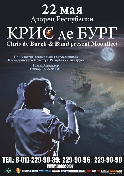 Концерт Криса де Бурга - прекрасный подарок себе и любимым в майский день...и просто большое удовольствие для всех романтиков. 22 мая в Большом зале Дворца Республики певец представит любимые всеми песни и новые свои композиции под аккомпанемент Президентского оркестра Республики Беларусь под управлением Виктора Бабарикина.