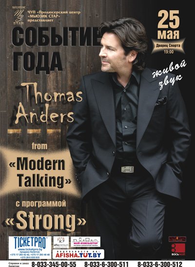 Продюсерский центр «МЬЮЗИК СТАР» представляет главное музыкальное событие года — гастрольный тур знаменитого Томаса Андерса, звезды «Modern Talking» с презентацией нового сольного альбома «Strong».