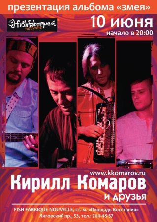 10 июня/пт – Кирилл Комаров и друзья. Презентация альбома «Змея»/350-400