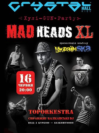 О 22:00 на сцені з’являться головні герої вечірки – гурт Mad Heads XL презентує програму зі свого нового альбому УкраїнSKA. Це, безумовно, напозитивніший альбом групи – чудова збірка українських народних пісень у рок-н-рольній обробці. Із новою програмою гурт вже відвідав кілька міст та підкорив серця меломанів. Цього вечора Mad Heads XL представлять новий альбом на Хулі-Gun Party.