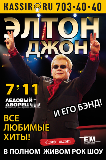 Творчество Элтона Джона знакомо не одному поколению слушателей. Его композиции почти три десятилетия не сходят с вершин мировых хит-парадов, а концерты собирают тысячи поклонников творчества этого легендарного исполнителя. Концерт Элтона Джона 7 ноября – это возможность насладиться красивой музыкой «вживую» в ее самой оригинальной ипостаси., ведь сэр Элтон впервые едет к нам со своим полным оригинальном составом со всеми своими уже ставшими великими музыкантами. Насладитесь оригинальным звучанием песен влюбивших в себя целый мир, среди которых: «Believe», «I’m Still Standing», «Candle In The Wind», «Saturday Night’s Alright For Fighting». «Nikita», «Yellow brik road» и многих другие.