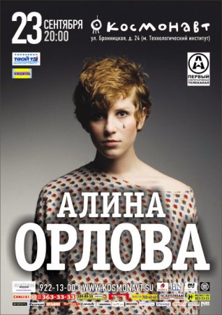 Литовская певица Алина Орлова в начале этой осени отправится в долгожданный большой российский тур. Концертов Алины Орловой в России не было с весны этого года. Российская часть тура начнется с концерта в Санкт-Петербурге - 23 сентября певица даст большой сольный концерт в клубе «Космонавт».