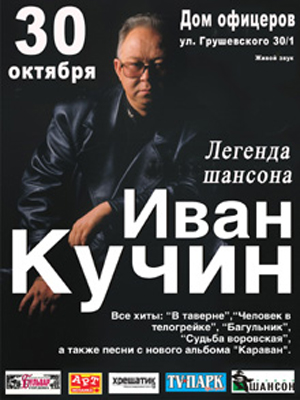 Концерты И.Кучина большая редкость в Украине вообще и в Киеве в частности, последний его концерт состоялся более 10-ти лет назад... В настоящее время артист закончил работу над новым альбомом "Караван" и некоторые песни представит публике на своём эксклюзивном концерте в Центральном Доме Офицеров 30 октября в 19.00.